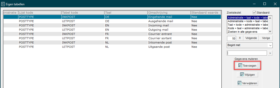 Vervolgens selecteer je bij ‘Lijstcode’ de optie ‘Documentsoort’. Vul bij ‘Tabelcode’ een unieke code in voor de documentsoort. Bij ‘Omschrijving’ vul je de omschrijving van het type in.