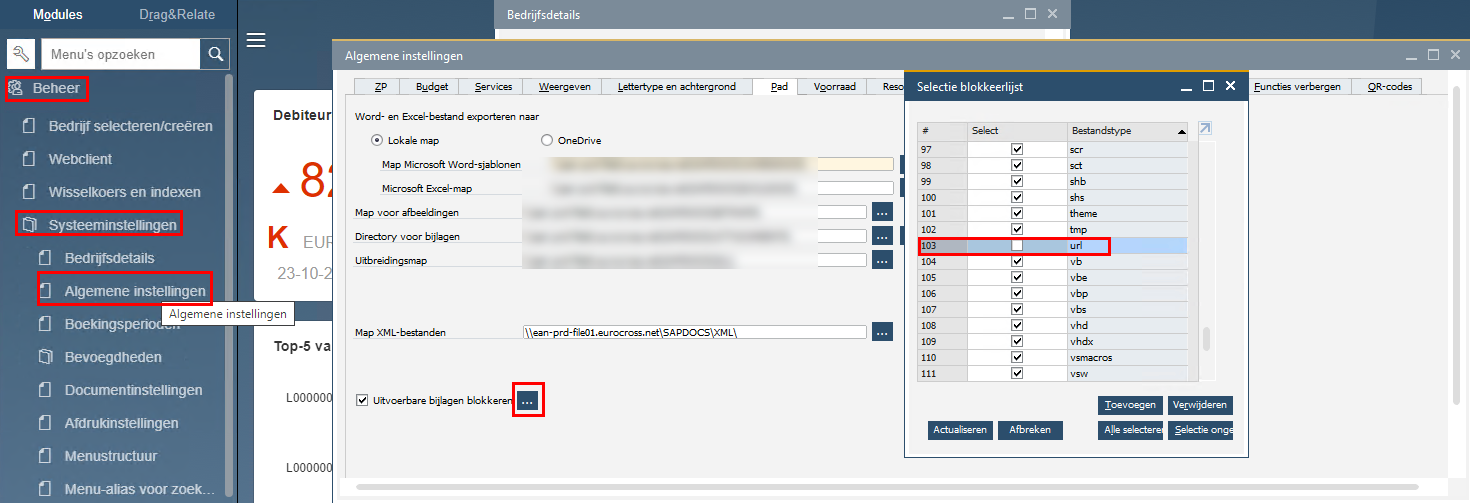 Ga hiervoor in SAP naar Modules - Beheer - Systeeminstellingen - Algemene instellingen - Tabblad Pad