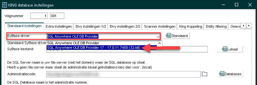 Aanpassen van de SyBase driver voor de KING administratie