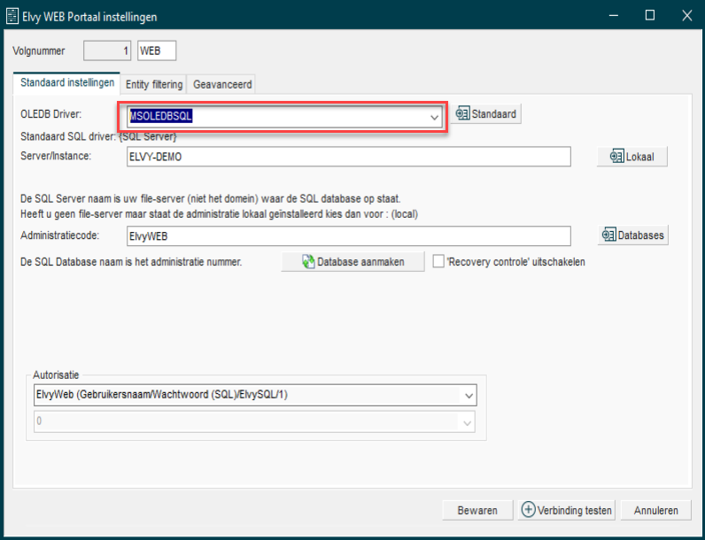 Aanpassing van OLEDB Driver voor de ElvyWeb database
