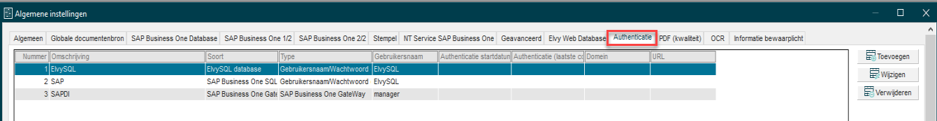 Op bovenstaande wijze kun je meerdere authenticaties aanmaken, zodat je met meerdere gebruikers tegelijkertijd facturen kunt verwerken vanuit Elvy naar SAP Business One.