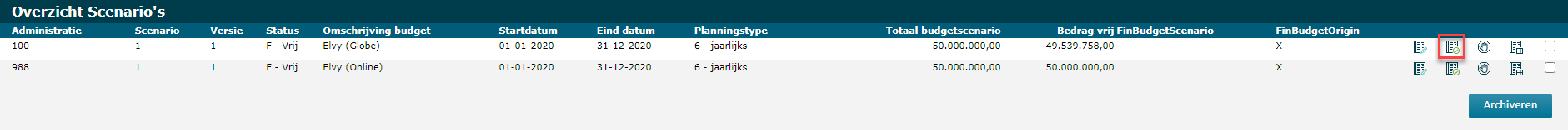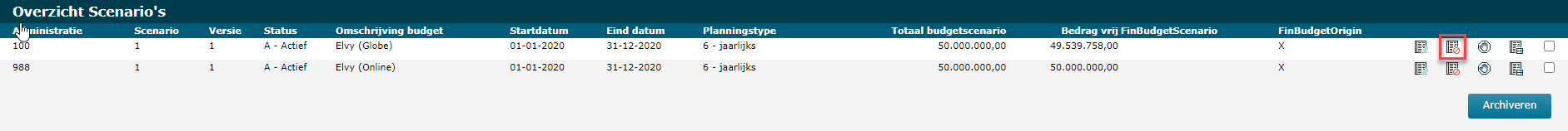 Het icoon dat je hebt gebruikt om het Budgetscenario te deactiveren, is nu veranderd in het Activeren-icoon: