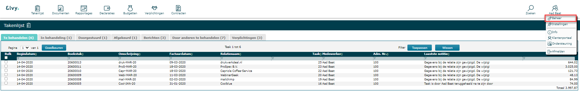 Ga via menu naar Beheer en open het tabblad Kostenbeheersing.