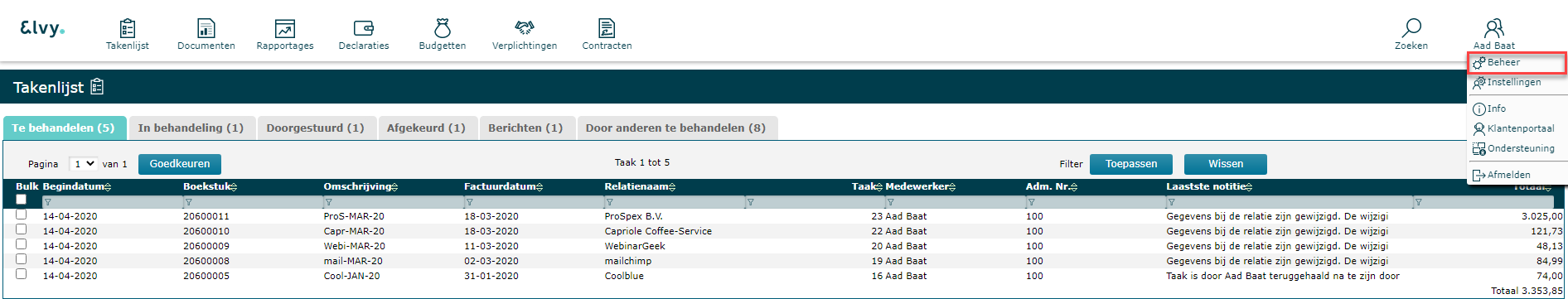Ga via menu naar Beheer en open het tabblad Kostenbeheersing.