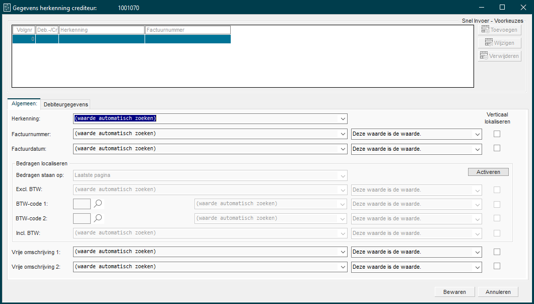 Vaste tekst op de factuur herkennen en gebruiken in boekingsomschrijving
