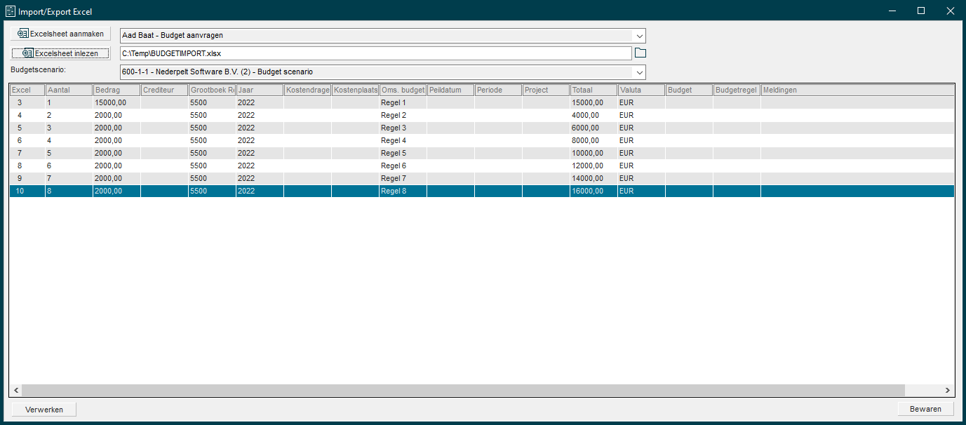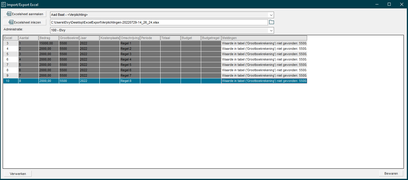 Je kunt nu in het Excel-bestand de verplichting vullen, zodat je deze kunt inlezen in Elvy.