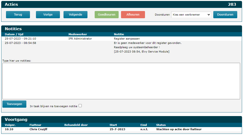 Bovenstaande acties zorgen ervoor dat er een nieuwe taak beschikbaar komt in ElvyWeb, gekoppeld aan de juiste fiatteur.
