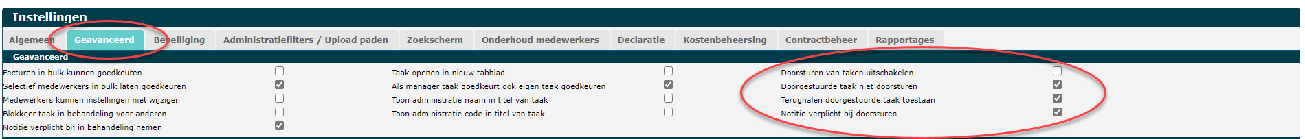 Welke instellingen zijn er aan te passen met betrekking tot het doorsturen van taken?